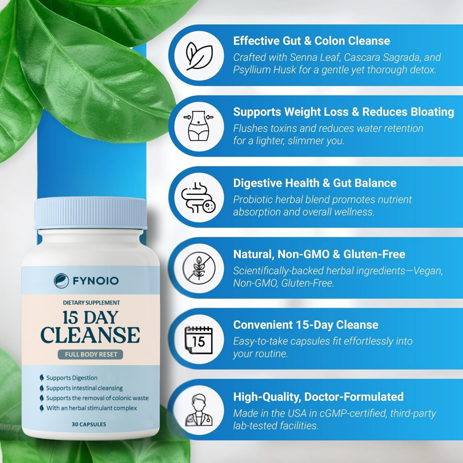 Why suffer through ineffective solutions when one natural cleanse can address it all? The Fynoio 15-Day Colon Cleanse is a powerful, all-in-one formula designed to relieve constipation, reduce bloating, and flush out toxins. With targeted ingredients like Senna Leaf, Cascara Sagrada, and Psyllium Husk, this cleanse gets to the root of the problem, delivering fast, gentle, and effective results. No complicated routines—just one solution for lasting digestive relief.